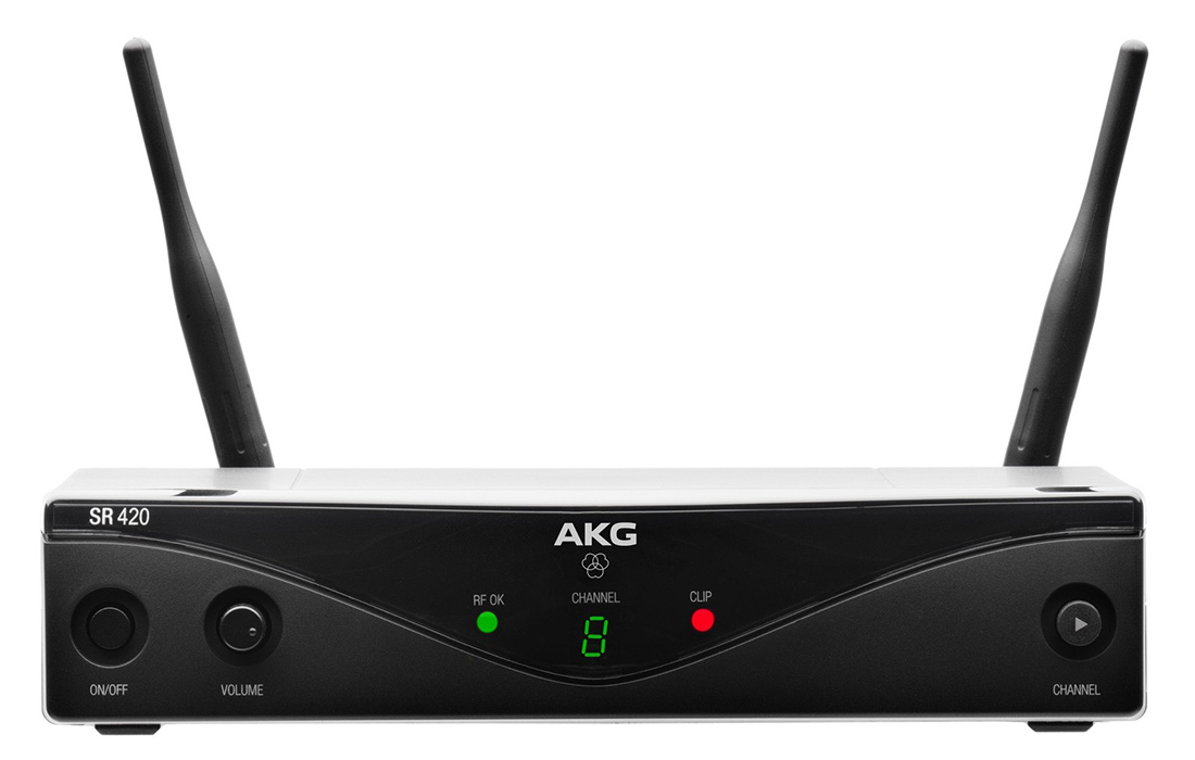 AKG WMS420 VOCAL – профессиональная беспроводная вокальная система с пилот-тон передачей для предотвращения нежелательного шума. Система состоит из HT420 ручного передатчика с динамическим капсюлем D5 для хорошо сбалансированного, мощного звука и приемника SR420 с пространственным разнесением и микрофонным и line выходами. AKG SR420 аналоговый высокопроизводительный с пространственным разнесением беспроводной приемник, который максимально прост в использовании. Он идеально подходит для вокального и инструментального применения в маленьких клубах и конференц залах. Для легкого мониторинга приемник оборудован светодиодным индикатором РЧ сигнала и пика. А также в нем есть профессиональные XLR и 1/4" джек разъемы. Чтобы Вы могли использовать его по всему миру, он поставляется с универсальным блоком питания с переключающимся режимом. Две антенны размещены на задней панели и являются съемными. AKG HT420 - ручной аналоговый беспроводной передатчик с динамическим микрофонным капсюлем. Кардиоидная диаграмма направленности гарантирует максимальное усиление без обратной связи и позволяет голосу быть услышанным в любом миксе. Скрученная стальная решетка надежно защищает капсюль, а регулятор гейн идеально настраивает громкость. Плюс микрофон оборудован бесшумным on/off/mute переключателем и светодиодным индикатором заряда батарейки, что позволяет контролировать время своего исполнения.