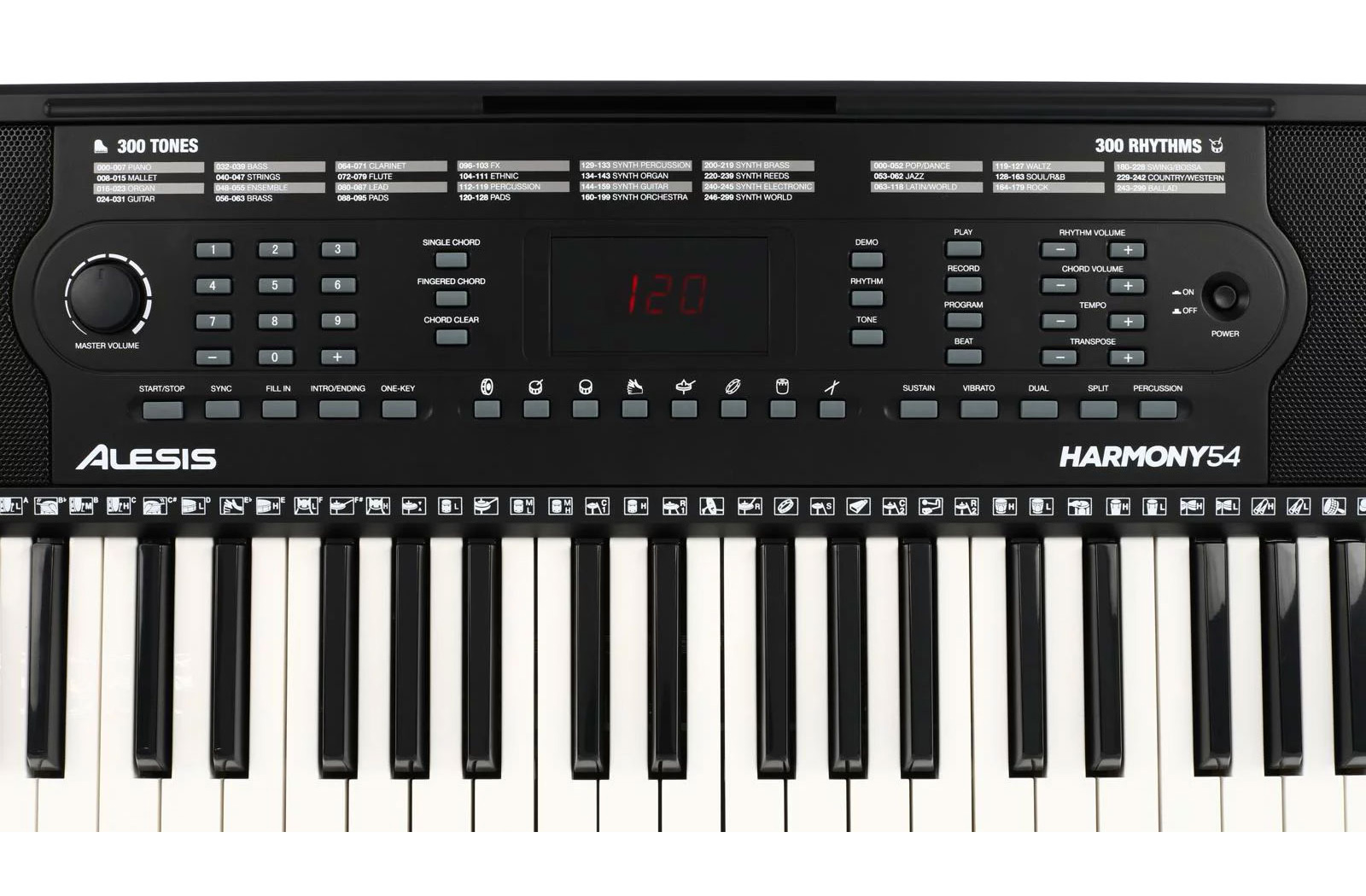 Синтезатор Alesis Harmony 54 - отличный вариант для всех, кто хочет научиться играть на фортепиано. Инструмент оснащен 54 клавишами и имеет 300 встроенных тембров с режимами наложения и разделения, а богатая библиотека из 300 ритмов станет отличным стимулом для совершенствования твоего исполнения. Встроенная акустическая система и комплектный микрофон превращают Harmony 54 в караоке-машину, а если нужно позаниматься, не тревожа окружающих, на помощь придет выход для наушников, отключающий динамики. Alesis хочет помочь каждому раскрыть свой творческий потенциал, поэтому вместе с Harmony 54 ты получаешь три месяца доступа к сервису Skoove Premium и два месяца уроков от TakeLessons. Научиться игре на пианино легко - доказано Alesis Harmony 54!