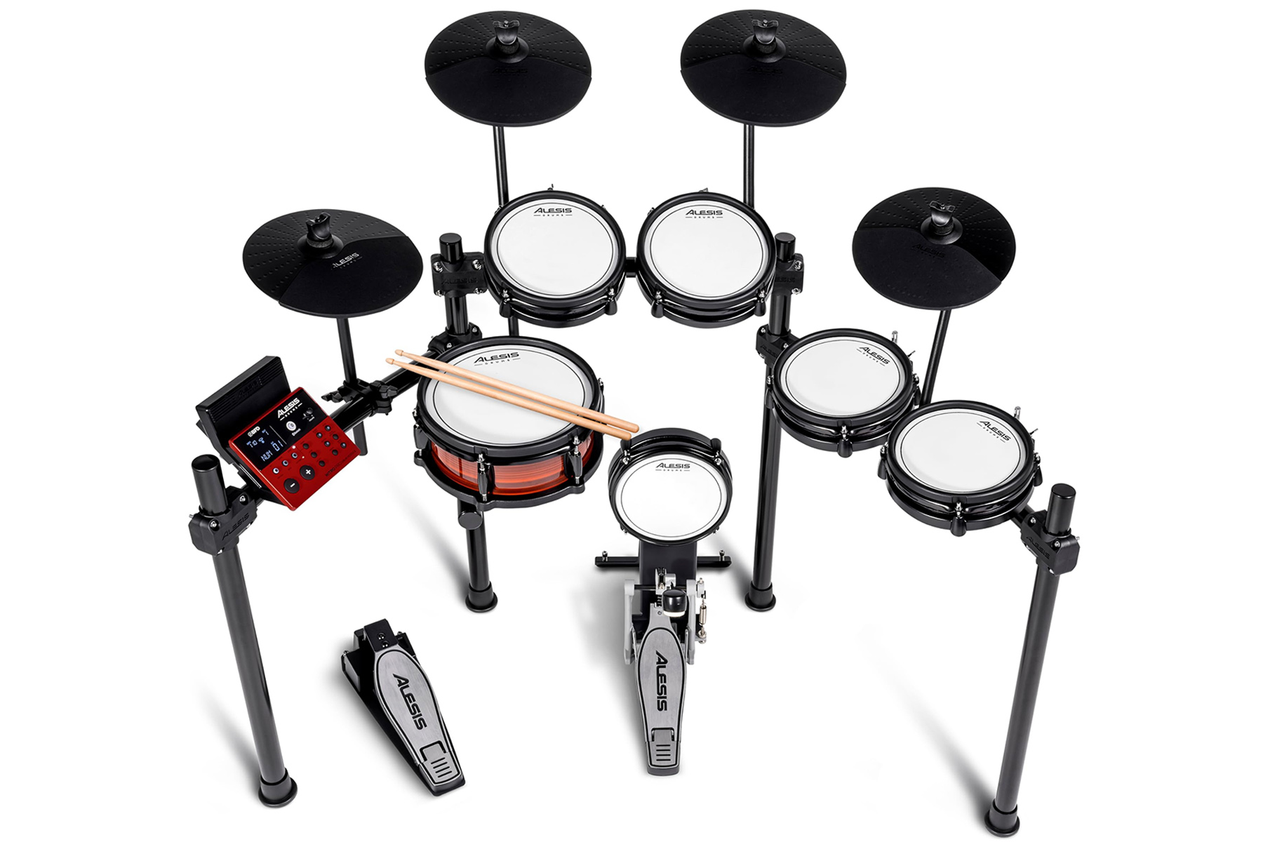 Сердце установки — модуль Nitro Pro с профессиональными функциями для практики и творчества. Он предлагает богатый набор возможностей для барабанщиков любого уровня.