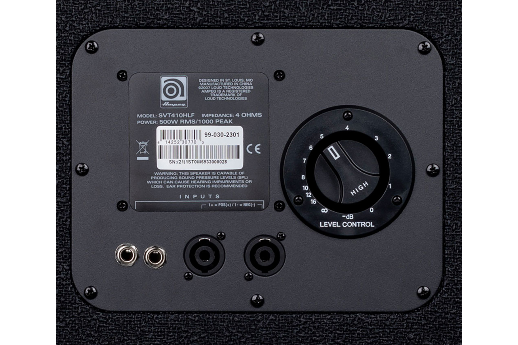 Ampeg SVT-410HLF - кабинет для бас-гитариста, которому требуется высочайшее качество звучания в одном компактном корпусе. SVT-410HLF обеспечивает потрясающие низкие частоты, вплоть до 28 Гц, благодаря четырем 10" динамикам, работающим вместе для перемещения огромного количества воздуха. SVT-410HLF фактически прокачивает на 10% больше воздуха, чем два 18" динамика, и на 25% больше, чем три 15" динамика! К тому же, крупные динамики просто не могут реагировать на кратковременные пики при атаке так быстро, как четыре "десятки". SVT-410HLF также способен воспроизвести превосходные верхние частоты благодаря своему 1" рупорному ВЧ драйверу.