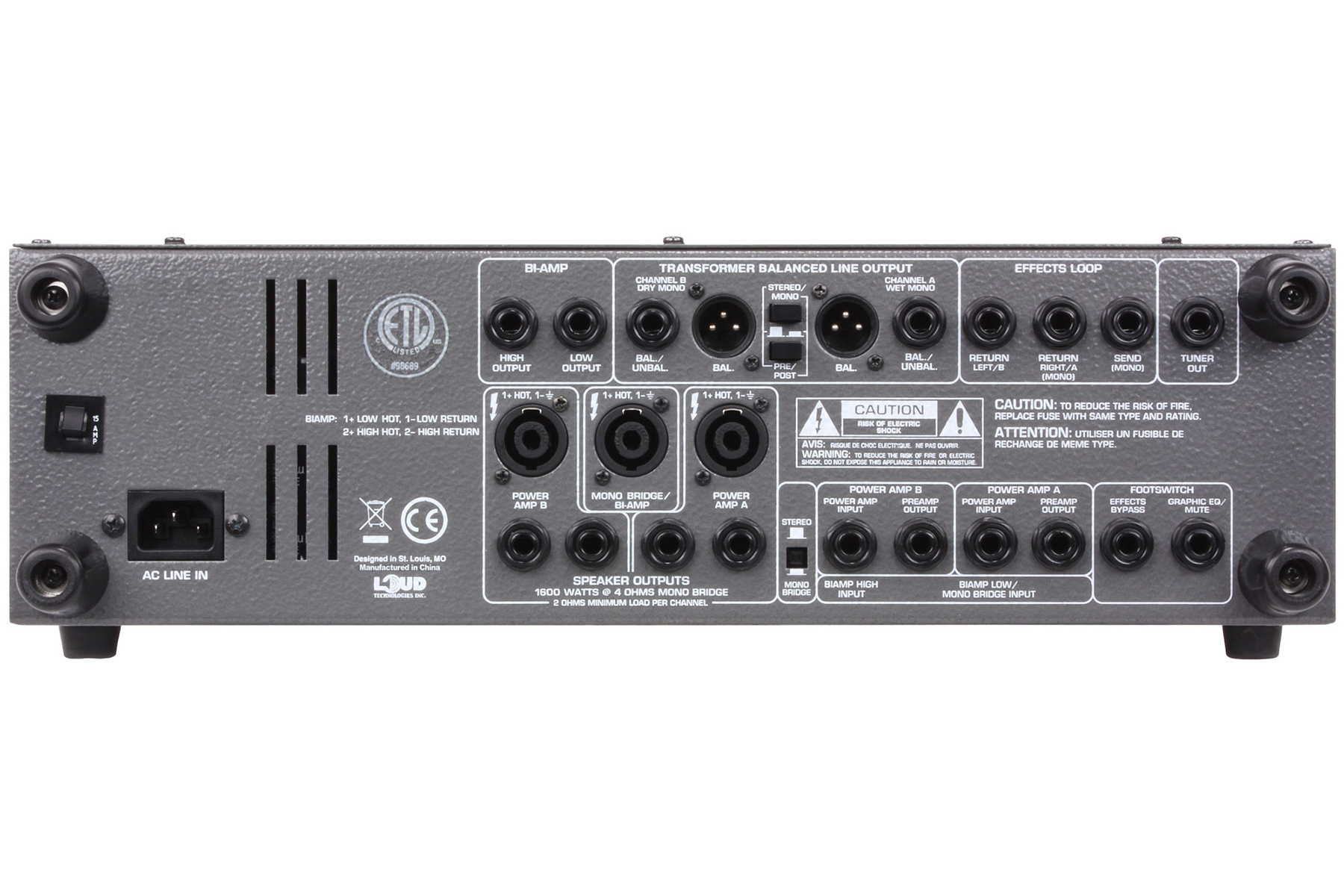 | Управление | Gain, эквалайзер (Bass, Mid, Treble), громкость, 5-позиционный переключатель Mid-tone control, 9-полосный графический эквалайзер, переключатели Ultra Hi/Lo, переключатель Bright, уровень компрессии, частота и баланс кроссовера, уровень линейного выхода |