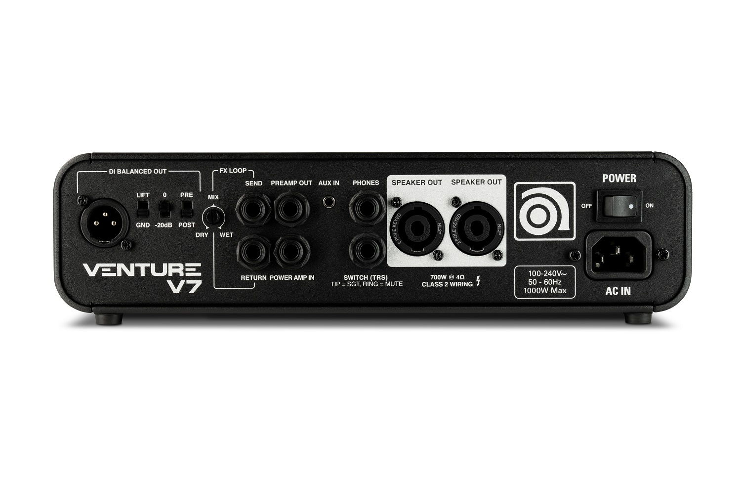 Venture V7 мощностью 700 Вт занимает среднее положение среди трех моделей серии Venture и удобно помещается в сумке для концертов, в сумке для ноутбука или в дополнительной сумке для переноски Venture, что делает его превосходным выбором для путешествующего басиста. Его силовая часть Class D обеспечивает более чем достаточную мощность для питания кабинета серии Venture или практически любого другого кабинета, с которым басист может столкнуться в туре.