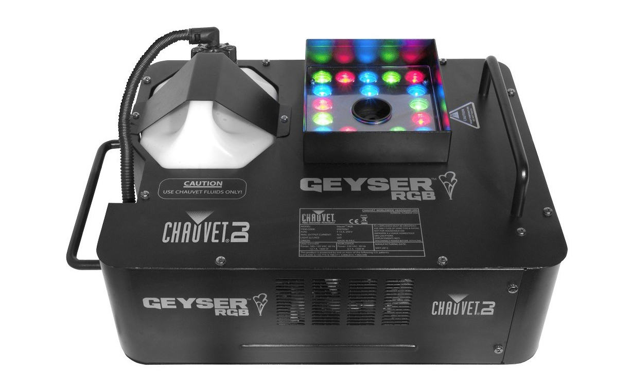 Купить дым машину Chauvet Geyser RGB Харьков, Киев, Днепропетровск, Одесса, Полтава, Сумы, Херсон, Запорожье, Кривой Рог, Николаев бесплатная доставка. Лучшее предложение на Chauvet Geyser RGB, самая низкая цена - 14907 грн в Украине. Сравнить мощность дым машины и ее характеристики можно в нашем музыкальном магазине.