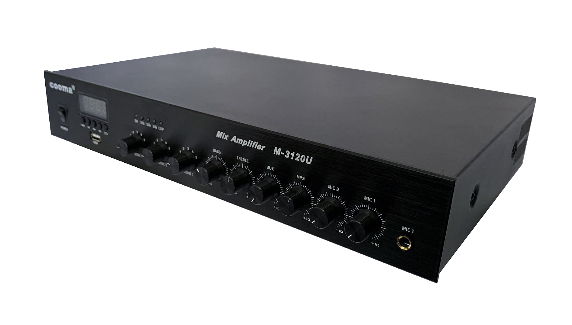 Артикул: SAMP1047Трьох зонний. 2- вхід MIC, 1-вхід лінійний , 1-вихід лінійний. USB, MP3 плеєром, Bluetooth, FM. Потужність змінного струму: 220V / 50Hz або 110V / 60Hz. З гучними басами та високими частотами. Потужність: 120 Вт. Вихід: 70В / 100В або 4-16Ω
