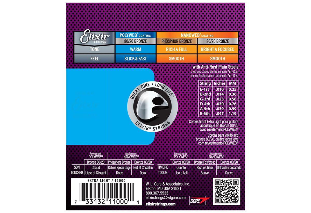 Elixir AC PW EL - Струны для акустической гитары, 6 струн, размер 10-47, материал бронза 80/20, покрытие POLYWEB.Струны для акустической гитары созданы из сплава бронзы 80/20 и имеют покрытие POLYWEB, обеспечивая таким образом теплый, «сыгранный» тон