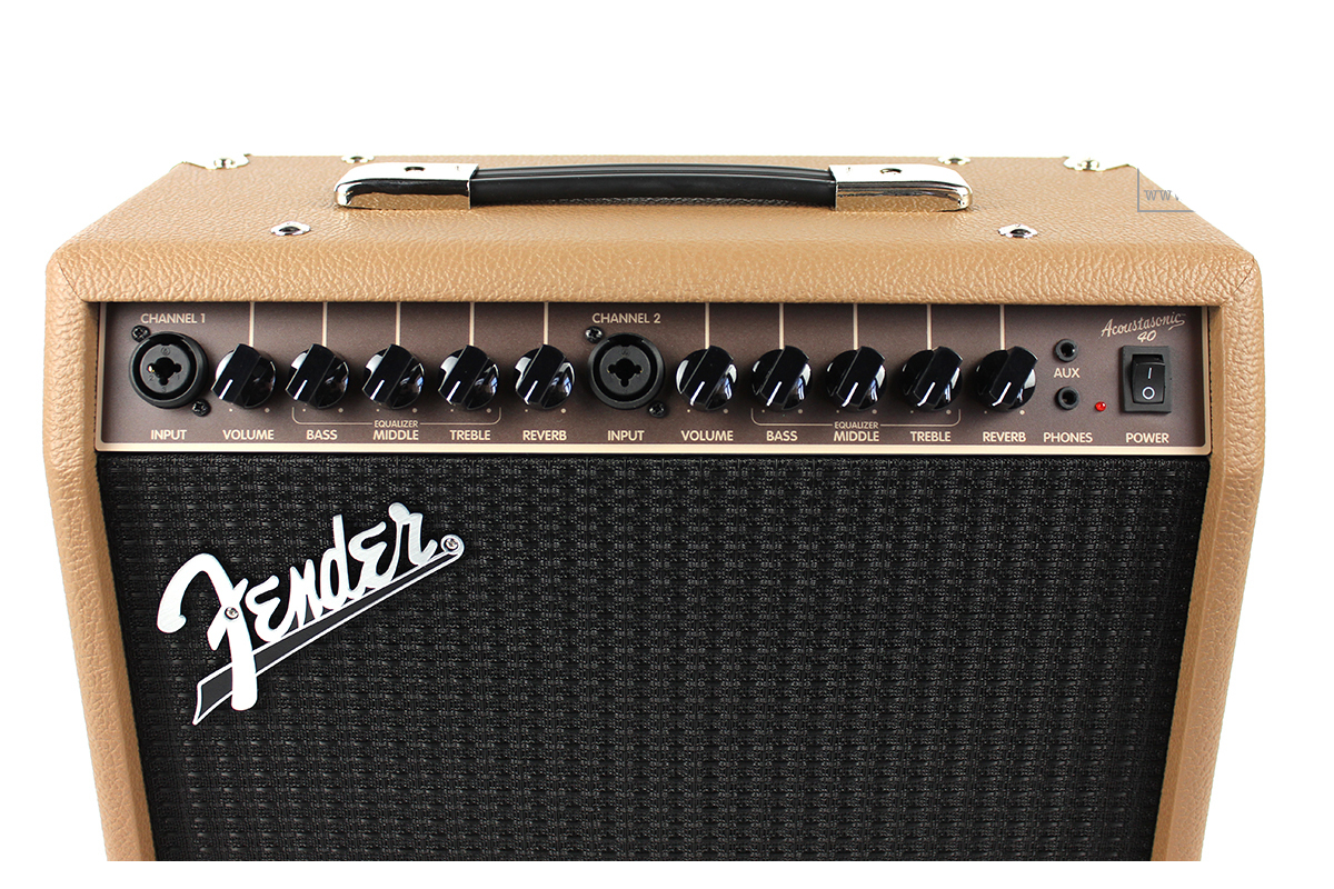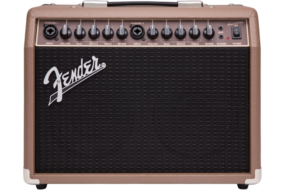 FENDER ACOUSTASONIC 40 – комбоусилитель от знаменитого американского производителя, специально разработанный для электроакустических гитар. Мощности 40 Вт вполне достаточно для выступлений в помещениях небольшого и среднего размера без подключения дополнительных систем звукоусиления. ACOUSTASONIC 40 можно также использовать в качестве сценического монитора. Комбоусилитель оснащен двумя высококачественными 6.5-дюймовыми динамиками «Special Design». Для настройки звучания используются регуляторы громкости, 3-полосный эквалайзер и ревербератор, независимые для каждого канала. Модель позволяет подключить гитару и микрофон. Для этого используются 2 комбинированных входных разъема XLR / 1/4" джек. FENDER ACOUSTASONIC 40 имеет компактный прочный корпус коричневого цвета.