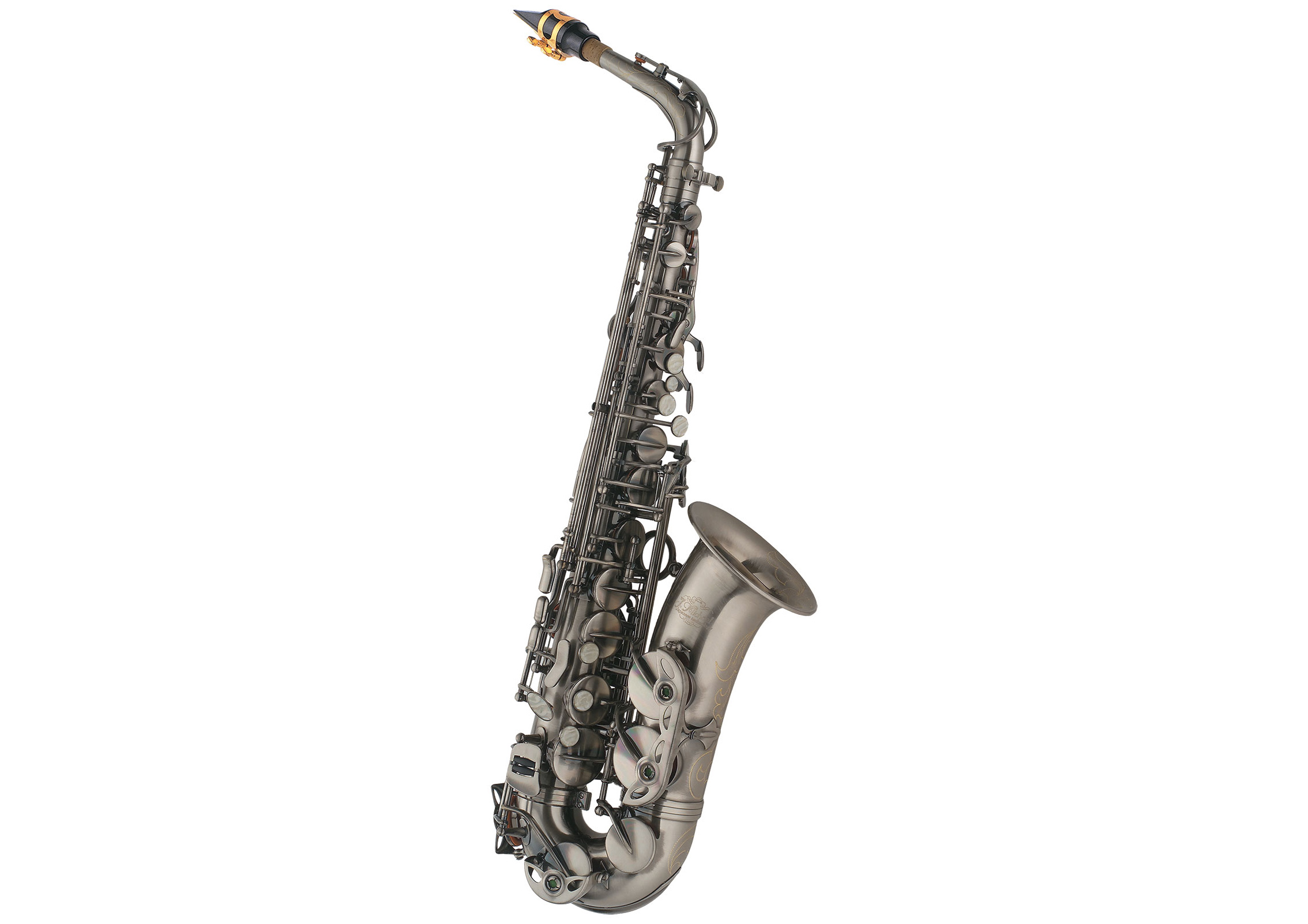 Изящные узоры, выгравированные на раструбе инструмента, подчеркивают и дополняют плавные очертания саксофона.