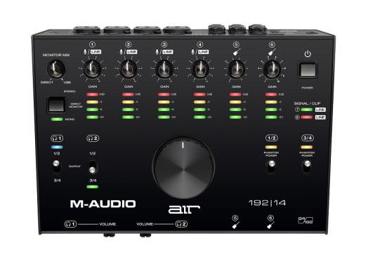 M-Audio AIR 192 | 14 - это многофункциональный USB-аудио / MIDI-интерфейс с 8 выходами и 4 выходами, который обеспечивает все соединения и программное обеспечение, необходимые для создания профессиональных записей студийного качества 24-бит / 192 кГц. AIR 192 | 14 имеет 4 комбинированных входа XLR + ¼” TRS, 2 линейных входы ¼” и 2 ¼ ”инструментальных входа, которые имеют специально разработанную преамп секцию с "правильным" импедансом для обеспечения наиболее точного звучания вашей гитары или баса при подключении непосредственно к интерфейсу. Имеются также входные и выходные разъемы MIDI, поэтому вы можете подключить любое внешнее MIDI-устройство, например, внешние секвенсоры, драм-машины и контроллеры.
