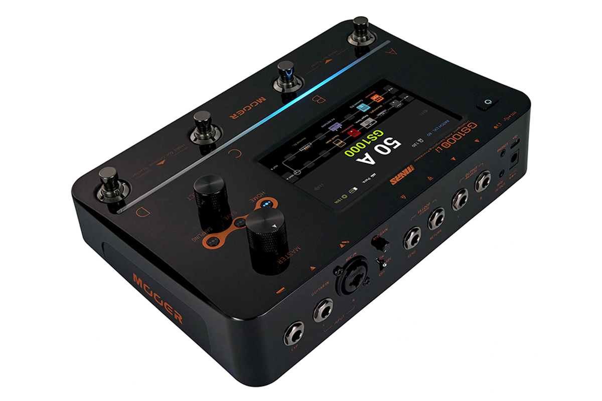 Візуально та функціонально GS1000 дійсно вирізняється від подібних пристроїв завдяки стильному дизайну та покращеному користувацькому інтерфейсу. Зокрема, він оснащений зручним 5" високоякісним сенсорним екраном, який доповнено атмосферним підсвічуванням, що додає візуальної виразності. Завдяки цьому GS1000 не лише забезпечує інтуїтивне керування, а й стає яскравим центром будь-якого гітарного сетапу. Окрім сенсорного керування, GS1000 пропонує розширені можливості підключення, перевершуючи і без того вражаючу гнучкість попередніх моделей. Зокрема, він підтримує бездротовий футсвіч MOOER F4, а також дозволяє керувати пресетами через зовнішні MIDI-контролери.